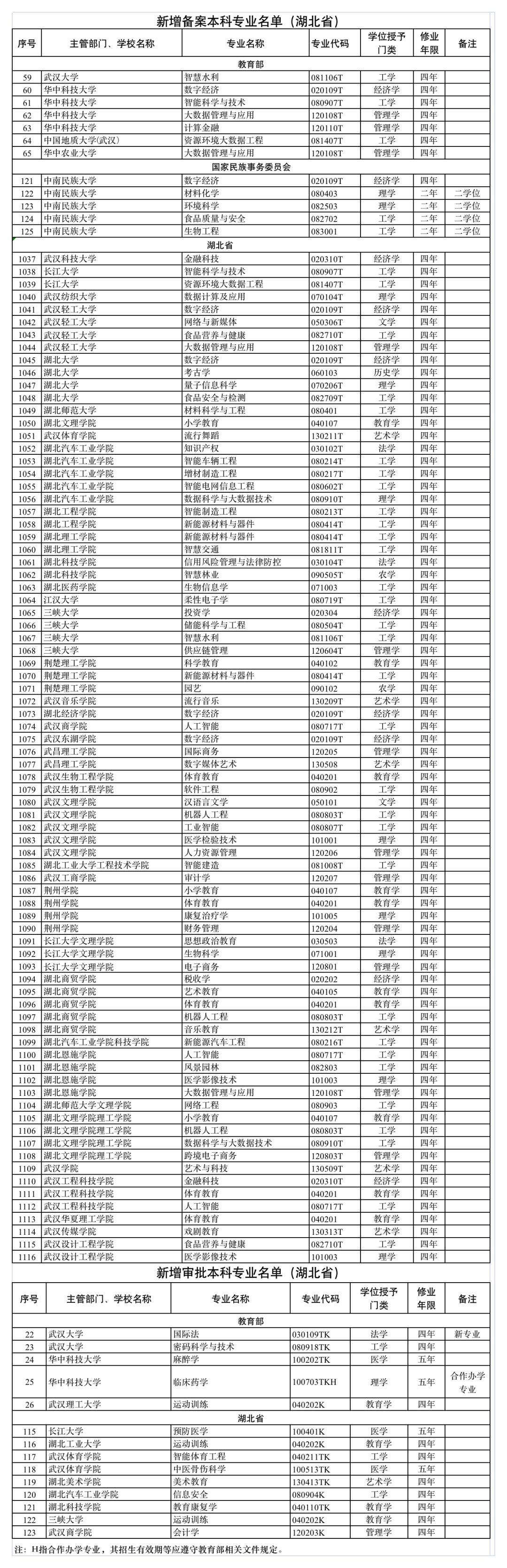 日前,教育部公布了2022年度普通高等学校本科专业备案和审批结果,全国高校新增备案专业1641个、审批专业176个。湖北45所高校共新增专业106个,其中新增备案专业92个,新增审批专业14个。